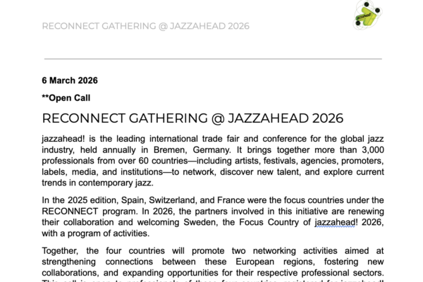 Seguir leyendo ¿Asistes a Jazzahead? Te esperamos en Reconnect Gathering – jazzahead! 2026