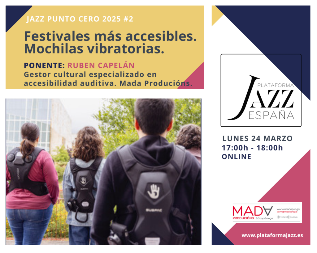 Contenidos: En esta charla, Rubén Capelán, gestor cultural y socio de la cooperativa gallega Mada Producións, nos explicará algunas claves y medidas para que un evento sea más accesible para las personas con discapacidad, con especial atención al funcionamiento de las mochilas vibratorias para las personas sordas.