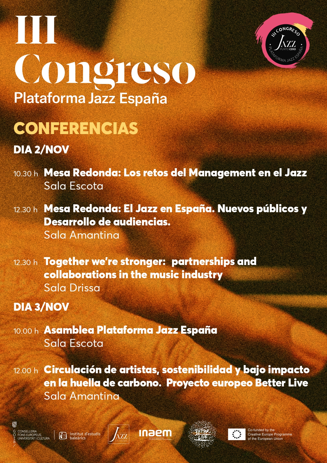 Ya podemos publicar las fechas de nuestro 3er Congreso Plataforma Jazz España: del 2 al 5 de noviembre 2023 en el marco de la sexta edición de Fira B!, el mercado profesional de