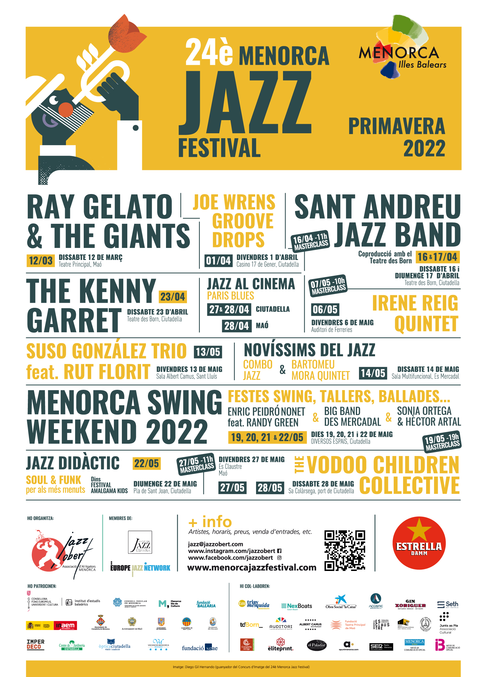 Entre el 12 de marzo y el 28 de mayo de 2022 tendrá lugar el 24è Menorca Jazz Festival. Comenzará con la actuación de Ray Gelato & The Giants el