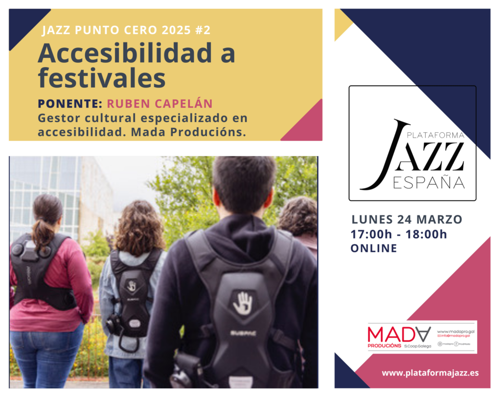 Ya puedes escuchar el #2JazzPuntoCero2025: Festivales más accesibles.Mochilas vibratorias, con Rubén Capelán, Gestor Cultural especializadoen accesibilidad. Cooperativa Mada Producións (Galicia). Link: https://www.youtube.com/watch?v=y7TMZ9B-IyY https://plataformajazz.es/