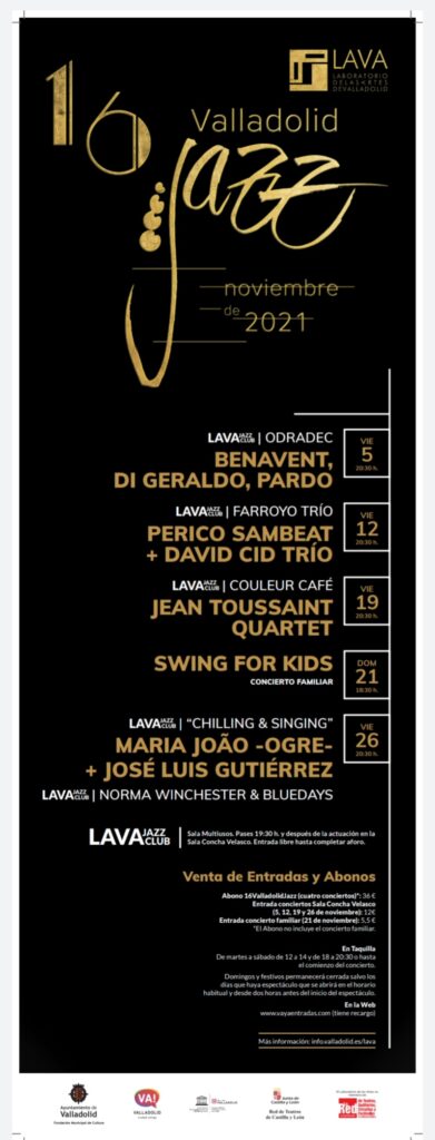 El XVI Festival Valladolid Jazz 2021 arranca el viernes 5 de noviembre. El Laboratorio de las Artes de la ciudad (LAVA) será el escenario de los conciertos de jazz que llegan a Valladolid durante todo el mes de noviembre. Un ciclo de actuaciones dirigido por el saxofonista vallisoletano José Luis Gutiérrez. Y que reunirá a importantes figuras nacionales e internacionales del jazz, habituales de los más reputados festivales del género.