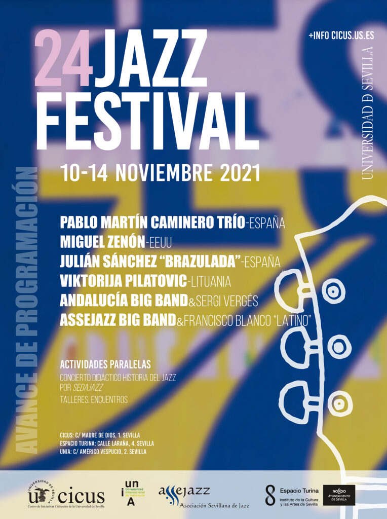 El Festival de Jazz Universidad de Sevilla cumple 24 ediciones acercando a la comunidad universitaria y a los aficionados sevillanos algunas de las propuestas más interesantes de esta disciplina musical. Este año se consolida la colaboración con el CICUS en este longevo proyecto, que se ha convertido en una de las citas obligadas en la agenda jazzística local y nacional, de la Universidad Internacional de Andalucía, UNIA, la asociación de músicos ASSEJAZZ y el ICAS del Ayuntamiento de Sevilla. La situación sanitaria ha provocado que el Festival vuelta a celebrarse en noviembre, en lugar de su fecha tradicional de finales de primavera.